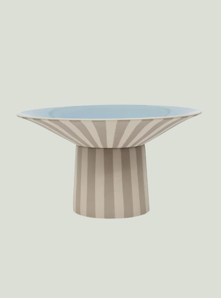Patera Toppu z odrobiną koloru to ręcznie malowany, rzeźbiarski element, który będzie ozdobą każdego stołu. Żywe paski dodadzą każdej przestrzeni zabawnego akcentu. Idealny do przechowywania drobiazgów lub serwowania przekąsek, a także jako unikatowy element artystyczny. Wymiary: Dł. 30 x Szer. 30 x Wys. 17 Materiał: 100% kamionka