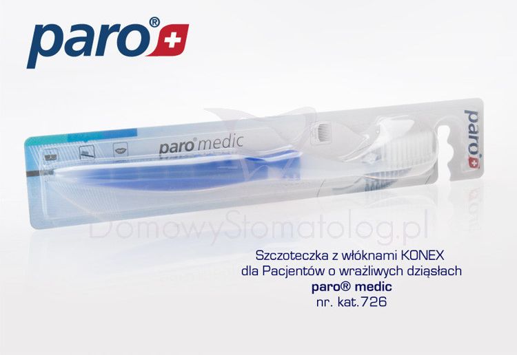 Paro® Medic - bardzo miękka szczoteczka do zębów delikatne i wrażliwe dziąsła Różowy Paro®medic Czuła, delikatna i arcydokładna! Dlaczego warto wybrać szczoteczkę paro®medic? Szczoteczka nowej generacji o jedwabiście miękkim i gęstym włosiu. Zastosowane mikrowłókna KONEX® są wyjątkowo elastyczne i łatwo uginają się, nawet pod niewielkim naciskiem. Oznacza to, że Paro Medic jest idealna dla osób o wrażliwych dziąsłach, nie tracąc przy tym właściwości czyszczących. Jakość szczoteczek paro® uznawana jest za standard kliniczny przez Uniwersytet Medyczny w Zurychu. Co wyróżnia miękką szczoteczkę paro®medic? Włókna CONEX® delikatne dla dziąseł: Wierzchołki włókien CONEX® są ponad 8 razy delikatniejsze niż zwykłe włókna. Są bardzo elastyczne i łatwo się uginają, dlatego doskonale chronią szkliwo i dziąsła. Włókna zwężają się ku końcom, dzięki czemu docierają nawet do trudno dostępnych miejsc w przestrzeniach międzyzębowych. Usuwają płytkę nazębną nawet na granicy linii dziąseł. Podczas masażu dziąseł włosie szczoteczki powoduje lepsze ukrwienie i tym samym szybszą regenerację dziąseł. Perfekcyjna ergonomia: Szczoteczka do zębów Paro Medic została zaprojektowana nie tylko z dbałością o jej subtelny design ale również tak, aby idealnie leżała w dłoni. Gumowe, kolorowe wstawki zarówno zdobią rączkę szczoteczki jak i gwarantują pewny chwyt. Bardzo miękkie włosie Delikatna da dziąseł Polecana dla osób o wrażliwych dziąsłach Wyprodukowano w Szwajcarii Szczoteczka do zębów z bardzo miękkim i gęstym włosiem. Szczególnie polecana dla osób o wrażliwych dziąsłach.