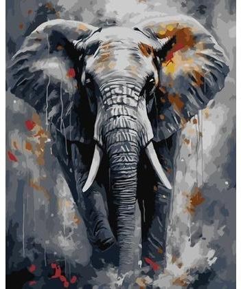 Zestaw do malowania numerami "Majestatyczny słoń" 40x50 cm Farbami metalicznymi Zestaw do malowania numerycznego składa się z zagruntowanego płótna artystycznego na blejtramie, zestawu wysokiej jakości farb akrylowych odpornych na ścieranie i przypalanie o pojemności 2,5 ml 9% każda, nylonowych …