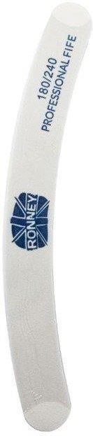 RONNEY Pilnik banan dwustronny biały (180/240) Idealny zarówno do naturalnej płytki, jaki i spiłowywania żelu czy akrylu. Wykonany z najwyższej jakości materiałów ściernych przeznaczony do stylizacji paznokci. Wielofunkcyjny kształt pozwala na szybką i efektywną pracę podczas piłowania paznokcia. …