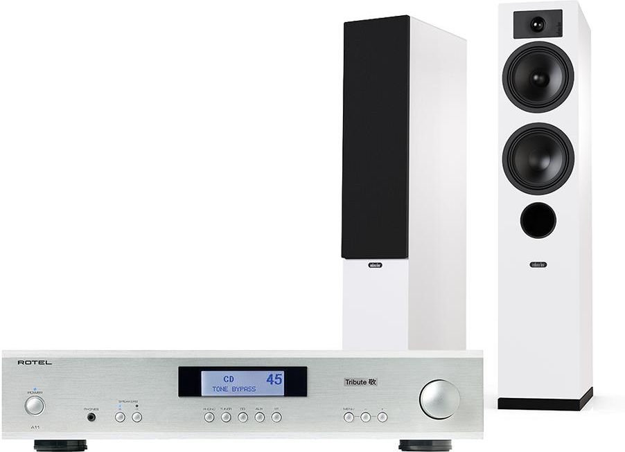 Rotel A11 Tribute (srebrny) + Tesi 5 (biały) Kórnik