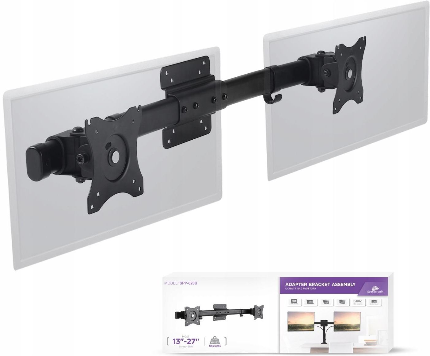 Spacetronik Uchwyt do rozbudowy na 2 monitory Vesa SPP-020B (SPP020B) Kórnik