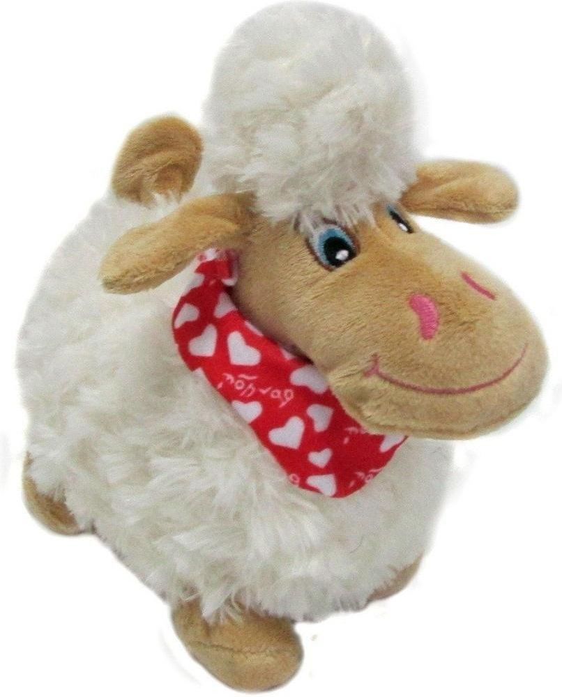 Maskotka owieczka o wielkości 25cm. Ładne kolory, nietypowy wzór. Pluszak dźwiękowy - po naciśnięciu przycisku wydaje głos.