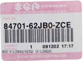 84701-62JB0-ZCE LUSTERKO BOCZNE ORYGINAŁ OE SUZUKIPodstawowe informacjeNumer producenta / numer oryginalnej części: 84701-62JB0-ZCENumer sprzedawanej części: 84701-62JB0-ZCEStan części: NowyJakość części: Oryginał (OE)Pasuje do:Suzuki SwiftAlternatywne oznaczenia producenta / inne numery producenta:84701-62JB0-ZCE8470162JB0-ZCE8470162JB0ZCEWażne informacjeJeśli Twojego auta nie ma na liście lub jeśli nie masz pewności czy część będzie pasować - przygotuj numer VIN i zapytaj o ofertę korzystając z opcji zadaj pytanie.Numery zamienne mają charakter poglądowy