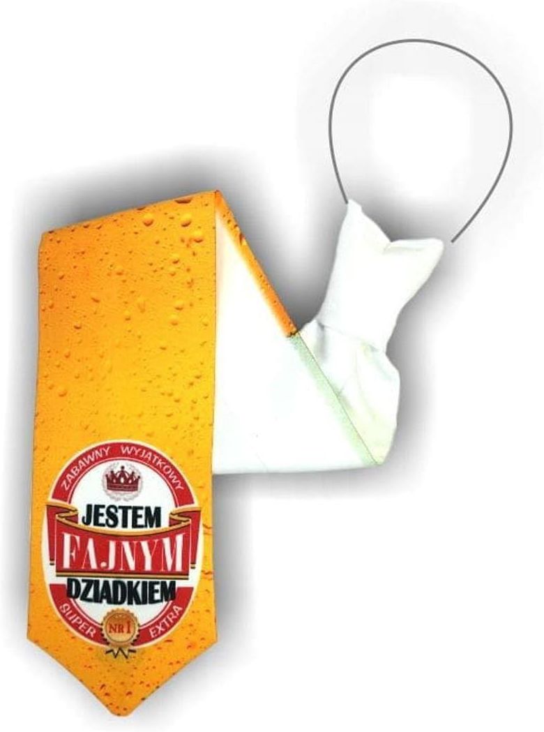 Krawat mocowany za pomocą elastycznej gumki z napisem "Jestem fajnym dziadkiem", idealny prezent na dzień dziadka. Długość całkowita: 50 cm. Szerokość: 8,5 cm.