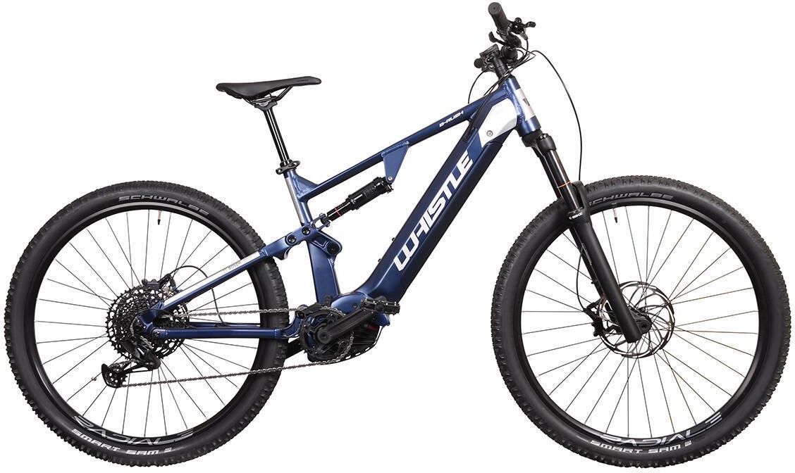 dane techniczne: Typ pojazdu->,Rower górski----Rozmiar koła->,29 ",----Maksymalna prędkość->,25 km/h----Rodzaj pojazdu->,Rower elektryczny----Maksymalne obciążenie->,Brak danych----Moc napędu elektrycznego->,250 W----Rozmiar ramy->,44 cm----Płeć->,Unisex----Napięcie robocze->,36 V----Manetki->,Sram SX Eagle----Ilość przełożeń->,12----Materiał ramy->,Aluminium----Bagażnik->,nie----Błotniki->,nie----Dodatkowe informacje->,Silnik: Bosch CX Performance Line 85 Nm, 4 poziomy wsparcia: Eco: 60 %, Tour: 140 %, Emtb: 140-340 %, Mechanizm korbowy: FSA 34T----Kierownica->,Aluminiowa, 780 mm----Widelec->,RST Vibe, 140 mm, 15/110, taperowany, blokowany----Przerzutka->,Sram SX Eagle----Koło zębate->,Sram Cs-Pg-1230 Eagle----Pedały->,Aluminiowe MTB Full----Siodło->,Whistle Performance----sztyca->,Dropper Alhpa 1, regulowana, 31,6 mm----Hamulce->,Tarczowe hydrauliczne, Clarks M4----Wyświetlacz->,Bosch Purion----Wbudowany wyświetlacz->,tak----Wskaźnik stanu akumulatora->,tak----Opony->,Schwalbe Smart Sam, Performance, 29x2.35----Felgi->,RADIALE X25, aluminiowe, asymetryczne----Zasięg (ok.)->,150 km----Moc (Ah)->,17,36----Czas ładowania->,do 9 godzin----Umieszczenie baterii->,W ramie----Zgodność z polskimi przepisami o ruchu drogowym->,tak----W opakowaniu znajdziesz->,Rower, Skrócona instrukcja obsługi----Obowiązkowe uprawnienia do kierowania pojazdem->,nie----Kolor->,Niebieski----Waga->,27.5 kg----Okres gwarancji->,24 mies.----Warunki gwarancji->,Na stronie producenta/importera, Miejsce: Autoryzowany serwis producenta----Kod producenta->,116831012