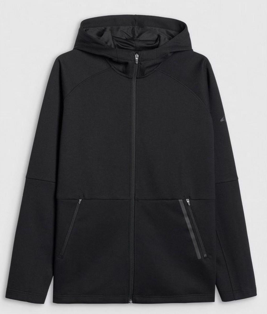 Bluza męska 4F zapewni komfort zarówno na co dzień, jak i podczas aktywności w plenerze. Klasyczny krój z obniżoną linią ramion i standardową długością sięgającą do bioder naturalnie układa się na sylwetce dbając nieograniczony zakres ruchów. Przyjemna w dotyku tkanina ma właściwości szybkoschnące i dba o zachowanie naturalnej przewiewności. Konstrukcja z jednokierunkowym zamkiem umożliwia wybór dogodnej formy noszenia. Nieodpinany kaptur bez regulacji tworzy dodatkową osłonę przed niekorzystnymi warunkami atmosferycznymi. Dwie, zapinane kieszenie tworzą praktyczną przestrzeń dla drobiazgów. Odblaskowe elementy poprawiają Twoją widoczność, gdy chcesz kontynuować aktywność w gorszych warunkach oświetleniowych. Bluza to połączenie funkcjonalności z komfortem, które są niezbędne podczas aktywności w zmiennych warunkach pogodowych. Dane techniczne:· Materiał główny: 61% poliester, 32% wiskoza, 7% elastan· Podszewka: 100% poliester· Miękka dzianina - zapewnia wygodę i przyjemnie otula ciało· Regularny krój - gwarantuje wygodne dopasowanie· Raglanowe rękawy· Elementy odblaskowe -zwiększają widoczność po zmroku· Dwie kieszenie na zamek - do przechowywania drobiazgów
