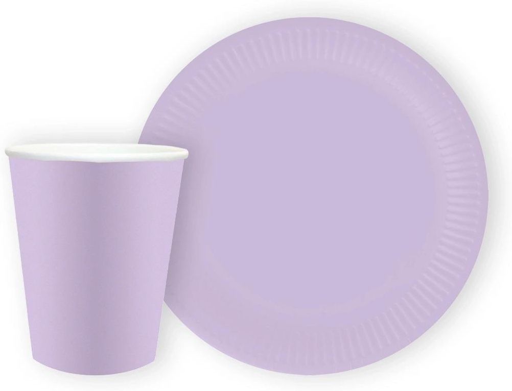 Fioletowa lawendowa jednorazowa zastawa papierowa. W komplecie: Kubeczki: - 250 ml - 12 szt. Talerzyki: - 18 cm - 12 szt. Opakowanie: 24 szt. !Kolory mogą się od siebie różnić!