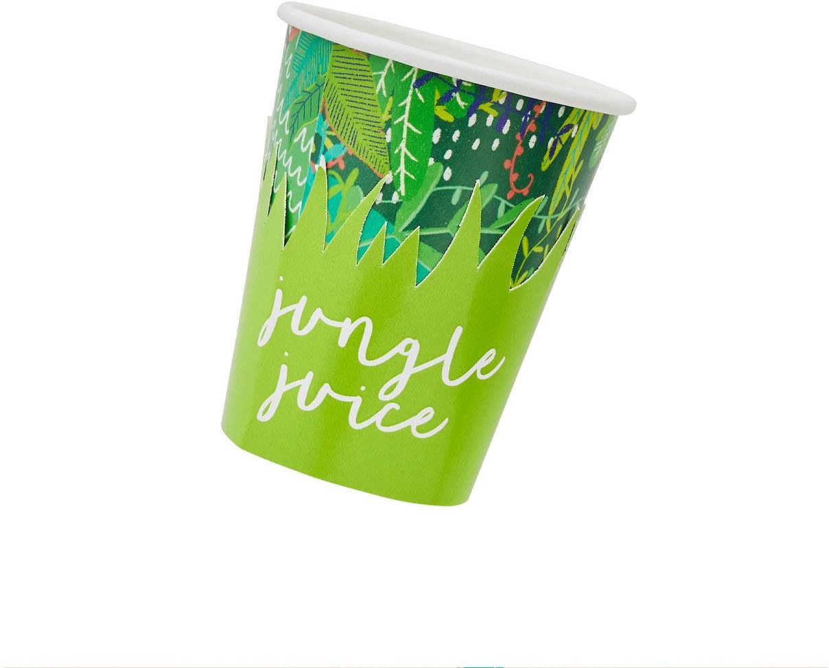 Papierowe kubeczki urodzinowe w motywie jungli z nakładką 3D imitującą trawę oraz napisem Jungle Juice. Idealny dodatek na urodziny w motywie safari, jungli czy na piknik. Pasują do zestawu Snappy Birthday. Pojemność: 250 ml. Opakowanie: 8 szt.