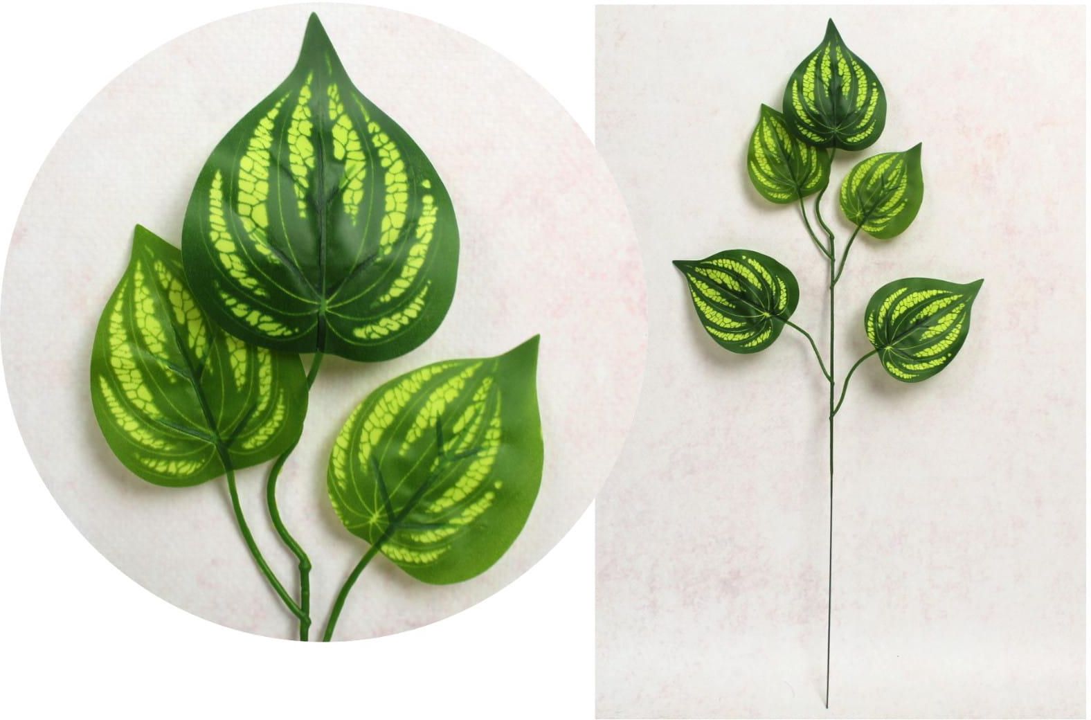 Hurt 7&7 Sztuczny Liść Silikonowy Serce 46 cm Zielony z Prążkami Koronowo