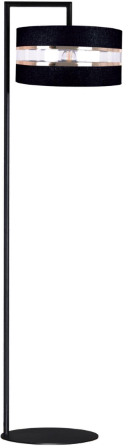 Wymiary: 160 x 40 x 44 cm Wymiar abażura: ⌀40 cm Gwint/Trzonek: E27 max 40W Kolor: czarny/złoty Materiał: metal, abażur