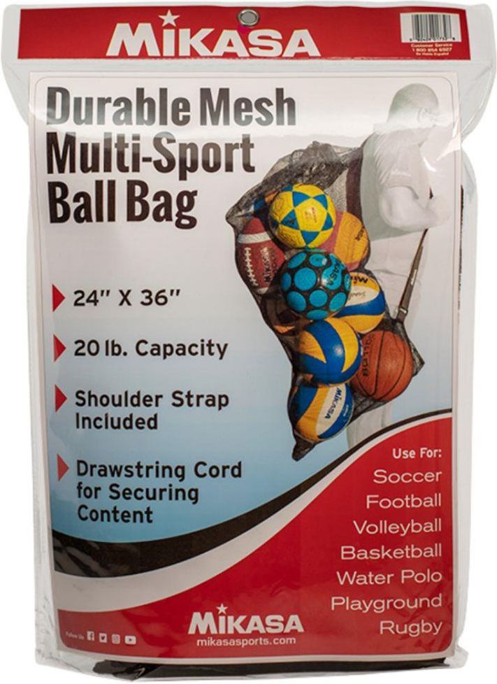 Siatka na piłki Mikasa czarna MBB2 Właściwości Producent zaprojektował siatkę, by ułatwić wszystkim trenerom transport różnego rodzaju piłek. Konstrukcja z trwałego materiału. Siatka ze sznurkiem ściągającym wykończonym stoperem pomieści do 12 piłek do siatkówki. Dane techniczne: · Materiał: poliester/polipropylen · Wymiary: 120x60 cm · Nieodpinany, regulowany pasek na ramię · Sznurek ściągający ze stoperem · Siatka na piłki do siatkówki, piłki nożne, piłki koszykowe, piłki rugby