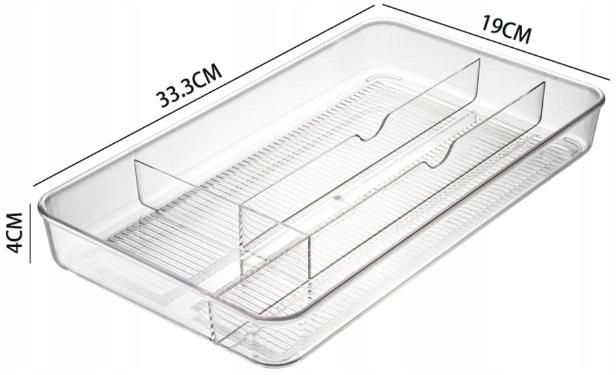 Organizer, wkład do szuflady 8 przegród wymiary27x15,5x7 cm kolor - bezbarwny plastik przeznaczony do kontaktu z żywnością odporny na temperatury -30/+60