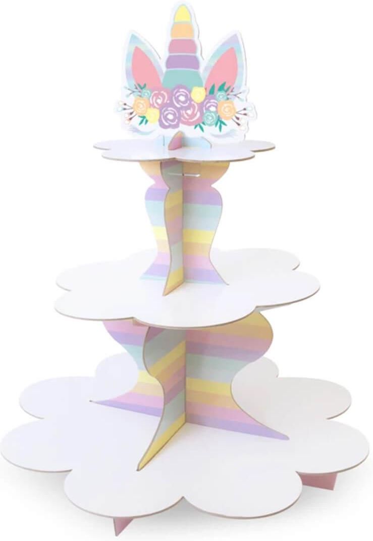 Prześliczny kartonowy stojak do ciasteczek, babeczek, muffinek, cukierków czy owoców. Jest bardzo solidny i wytrzymały. Patera rodem z kolekcji z Jednorożcami. Na 3 poziomach zmieścisz nawet 24 muffinki! doklejka - topy jednorożec,Happy Birthday,jednorożec / unicorn,PartyPal,PARTYPAL jednorożec urodziny,tęczowy,Unicorn Party