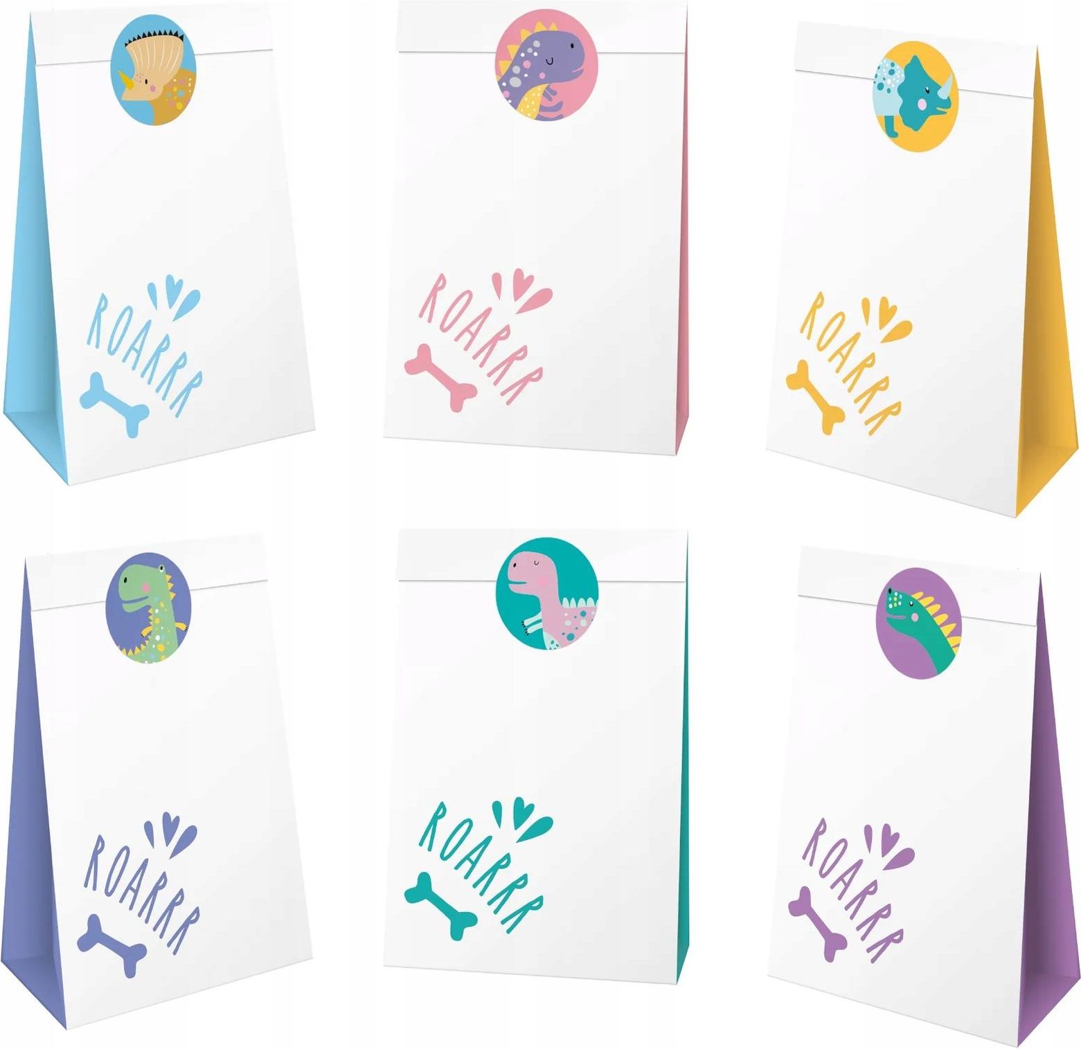 TOREBKI NA SŁODYCZE DINOZAURY 6 SZTUK Torebki na słodycze dinozaury Wymiary po złożeniu: 10 cm x 17,5 cm Element kolekcji dinozaury. Kod produktu: 133125. Producent: Party Pal. Opakowanie zawiera 6 torebek i 6 naklejek. Produkt wysokiej jakości ⭐⭐⭐⭐⭐ Torebki na słodycze dla dzieci na urodziny Dziecięce przyjęcie urodzinowe nie może się udać bez cukierków, ciastek i batoników. Warto zaserwować te pyszne smakołyki w uroczych, barwnych papierowych torebkach, które dodatkowo przyozdobią imprezowy stół. Torebki papierowe na słodycze Prezentowane torebki na słodycze zostały wykonane z wysokiej jakości kolorowego papieru z dołączonymi naklejkami. Są lekkie, poręczne i bardzo ładnie prezentują się na słodkim stole.