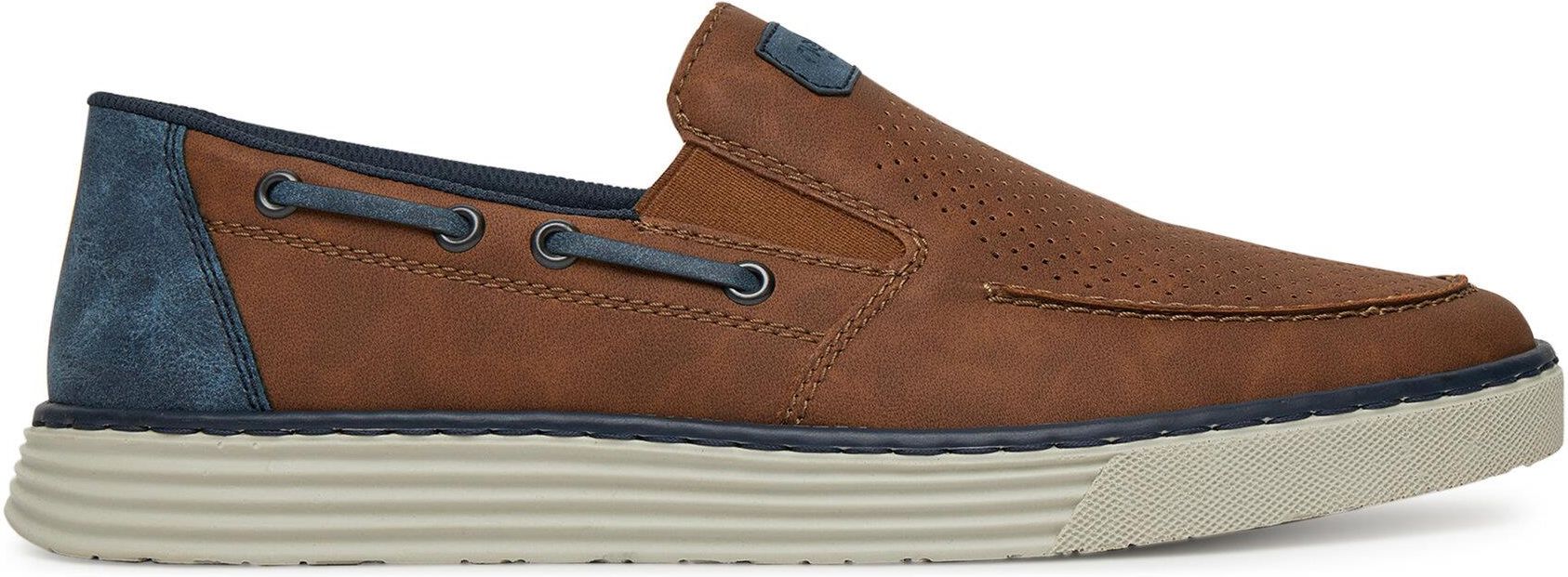 Odkryj wygodę i styl z brązowymi półbutami męskimi marki Rieker! Wykonane z wysokogatunkowego tworzywa syntetycznego, te półbuty są idealnym wyborem na co dzień, niezależnie od okazji. Ich casualowy styl sprawia, że doskonale komponują się zarówno z jeansami, jak i bardziej eleganckimi spodniami. Płaska podeszwa zapewnia komfort noszenia przez cały dzień, a zastosowana technologia Rieker Antistress dodatkowo zwiększa wygodę, redukując napięcie w stopach. Wybierz półbuty Rieker, które łączą nowoczesny design z funkcjonalnością, i ciesz się każdym krokiem! Od ponad stu lat marka Rieker oferuje niezwykle komfortowe i trwałe obuwie, które powstaje z myślą o zdrowiu stóp. Dzięki wieloletniemu doświadczeniu w produkcji obuwia, ta niemiecka marka doskonale potrafi łączyć wygodę ze stylem, dlatego w ofercie znajdziesz buty w modnych, oryginalnych fasonach, które każdemu przypadną do gustu. Buty Rieker tworzone są z materiałów wysokiej jakości, przez co odznaczają się wyjątkową elastycznością i trwałością, ale też lekkością. Ponadto w obuwiu stosuje się szerszą formę zapewniającą odpowiednią stabilizację stopy, specjalne podeszwy absorbujące wstrząsy oraz odciążające stawy i kręgosłup, a także wyjmowane wkładki z pianki Memory Foam, która idealnie dopasowuje się do kształtu stóp. To doskonałe produkty dla tych, którzy ponad wszystko cenią sobie komfort. Przekonaj się!