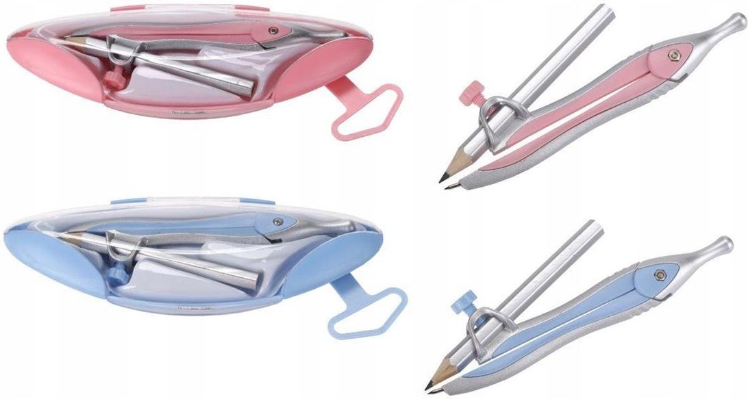 Ravi cyrkiel zestaw z ołówkiem MIX kolorów wysyłany losowo Zestaw cyrkla Ravi to funkcjonalne i stylowe narzędzie kreślarskie, idealne dla uczniów, studentów i wszystkich, którzy potrzebują precyzyjnego cyrkla do rysunku technicznego, geometrii czy matematyki. W komplecie znajduje się: Cyrkiel o wysokości 12,5 cm – wygodny w użyciu, z solidnym mechanizmem blokującym. Grafitowy ołówek – gotowy do rysowania, idealnie pasujący do uchwytu cyrkla. Plastikowe etui – zabezpiecza zestaw przed uszkodzeniami i zgubieniem elementów. Produkt dostępny w dwóch kolorach: różowym lub niebieskim – kolor wysyłany losowo, w zależności od dostępności. Zestaw Ravi to niezawodne akcesorium szkolne, które sprawdzi się w codziennym użytkowaniu. Niezbędny podczas zajęć z matematyki, geometrii czy techniki. Dzięki wygodnemu etui możesz mieć go zawsze pod ręką – w tornistrze, plecaku lub na biurku.