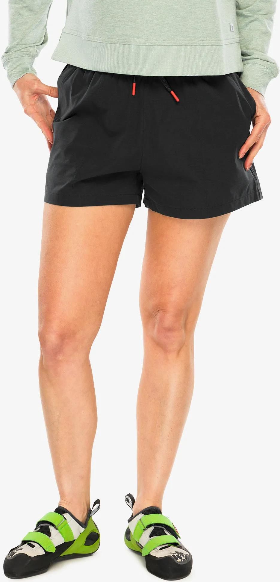 Spodenki wspinaczkowe damskie Black Diamond Sequence Shorts - black to oddychające i komfortowe spodenki, idealne na każdą aktywność w ciepłe dni, od sesji na siłowni po letnie popołudnia na boulderach. Wyposażone w elastyczny pas z wbudowanym sznurkiem do regulacji, zapewniają wygodne dopasowanie. …