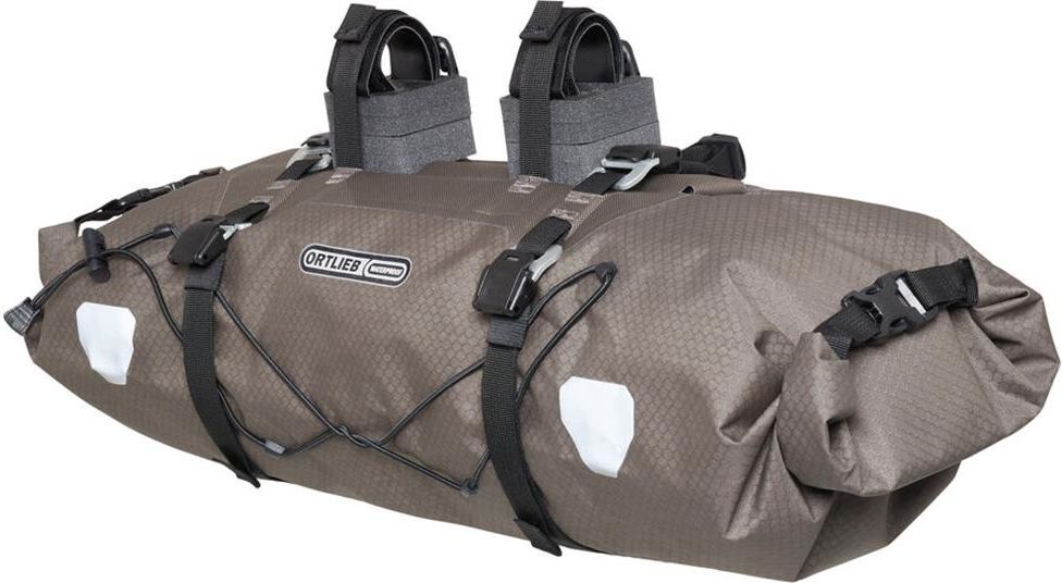 Wodoodporna torba na kierownicę Handlebar-Pack marki ORTLIEB to propozycja skierowana do rowerzystów preferujących wyprawy bikepackingowe. Sakwa umożliwi prawidłowe rozłożenie ciężaru, dzięki czemu pokonywanie trasy nawet z dużym obciążeniem będzie komfortowe. Pojemność 15 litrów sprawia, że zmieścisz w niej najpotrzebniejsze przedmioty, niezbędne podczas kilkudniowej wycieczki. Wodoodporny materiał ochroni Twój bagaż przed zamoknięciem. Niezależnie od panujących warunków pogodowych wszystkie rzeczy znajdujące się we wnętrzu pozostaną suche. Usztywnione wnętrze torby zapewnia dodatkową stabilność. Zwijane zamknięcia na obu końcach, umożliwiają szybki dostęp do zawartości. Specjalne pasy kompresyjne umieszczone na zewnątrz torby dają możliwość przewożenia i zamocowania dodatkowego bagażu np. karimaty. Torba na kierownicę Handlebar-Pack wyposażona została w cztery haczyki, które umożliwiają przewożenie akcesoriów ORTLIEB, abyś mógł uzyskać dodatkową przestrzeń do przechowywania wewnątrz. Elementy odblaskowe 3M Scotchlite zadbają o zwiększoną widoczność po zmroku. Składający się z przekładek dystansowych i dwóch mocnych pasków na rzepy, system mocowania zapewnia bezpieczny montaż do każdego typu kierownicy, w tym również tych wykonanych z włókna węglowego. Najważniejsze informacje: Dwa pasy oraz osiem zaczepów pozwalających zamontować torbę do praktycznie każdego typu kierownicy. Wewnętrzne usztywnienia plastikowe. Elastyczne pasy pozwalające na kompresję rozmiaru torby. Haczyki do mocowania zestawu akcesoriów. Waga: 417 g.