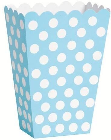 unique Pudełka na popcorn błękitne w białe kropki 8szt Koronowo