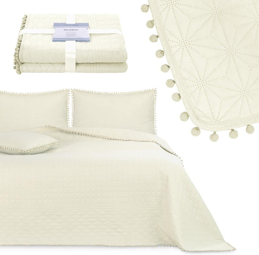 Narzuta pikowana z pomponami Meadore Rozmiar: 260 x 280 cm Kolor: kremowy Marka: AmeliaHome Materiał wierzchni: poszycie 100% poliester, wypełnienie 100% poliester Poszycie: przód 70 gsm, tył 70 gsm, wypełnienie 110 gsm Pikowanie: ultrasonic Pielęgnacja: Prać ręcznie. Suszyć w pozycji poziomej. …