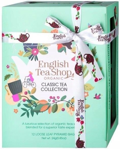 Herbata English Tea Shop Classic Tea Collection Mint 12 piramidek - zestaw herbatek organicznych Opis produktu Zestaw herbat Classic Tea Collection Mint to kolekcja organicznych herbat o różnych smakach. W tej herbacianej kompozycji znajdują się zarówno delikatne herbaty o subtelnym aromacie, jak i wyraziste mieszanki z przyprawami korzennymi. Idealna propozycja na prezent dla miłośników herbaty lubiących próbować ciekawych smaków. Zwłaszcza dla tych, którzy cenią ekologiczne produkty i marki dbające o naszą planetę oraz zrównoważony rozwój. Certyfikaty: Eko-liść, USDA Organic, Soil Association Organic Standard, Non-GMO project verified, Niektóre z herbat zawierają lukrecję – chorzy na nadciśnienie powinni unikać nadmiernego spożycia. Skład zestawu Classic Tea Collection Mint 12 piramidek Green Tea & Pomegranate - Ekologiczna zielona herbata z owocem granatu i płatkami róży. organiczna herbata zielona - 91% aromaty naturalne - 5% organiczny granat - 5% płatki organicznej róży - 1% Cranberry, Hibiscus & Rosehip – Ekologiczna owocowa herbatka z hibiskusem, dziką różą, trawą cytrynową. organiczny hibiskus - 33% organiczny owoc dzikiej róży - 26% organiczna trawa cytrynowa - 25,5% organiczny imbir - 6% organiczna garcynia - 4% naturalny aromat żurawinowy - 3% naturalny aromat liczi - 1,5% organiczna żurawina - 1% Cocoa Cinnamon & Ginger – Ekologiczna ziołowo-owocowa herbatka z aromatycznymi dodatkami. organiczny cynamon - 45% organiczne kakao - 32% organiczny koper włoski - 15% organiczny imbir - 8% Super Berries - Ekologiczna herbata owocowo-ziołowa z truskawkami, jagodami i malinami organiczny hibiskus - 63% organiczny rooibos - 19% aromaty naturalne - 5% organiczna mięta zielona - 4% organiczne maliny - 3% organiczne truskawki - 3% organiczne jagody - 3% Earl Grey - Ekologiczna czarna herbata z bergamotką organiczna herbata czarna cejlońska z certyfikatem Fair Trade - 95% organiczny olejek bergamotowy - 5% Jasmine Green Tea - Ekologiczna zielona herbata z jaśminem i dzikim bzem organiczna herbata zielona - 92% kwiat organicznego jaśminu - 3.25% organiczny dziki bez - 2% aromaty naturalne - 2.75% English Breakfast - Ekologiczna czarna herbata organiczna herbata czarna z certyfikatem Fair Trade - 100% Lemon Black Tea - Ekologiczna czarna herbata z trawą cytrynową i cytryną. organiczna herbata czarna - 74% organiczna trawa cytrynowa - 17% naturalny aromat cytrunowy - 5% skórka organicznej cytryny - 4% Rooibos, Acai & Pomegranate – Ekologiczny rooibos z miodokrzewem i soczystymi ekologicznymi owocami. organiczny rooibos - 59,5% organiczny miodokrzew - 19% organiczny hibiskus - 14% organiczny aromat borówkowy - 3,5% naturalny aromat granatu - 1,5% organiczny granat - 1% organiczne maliny - 1% organiczne jagody acai - 0,5% Turmeric Ginger & Lemongrass – Ekologiczna herbatka ziołowa z aromatycznymi przyprawami. organiczny imbir - 30% organiczna kurkuma - 30% organiczna trawa cytrynowa - 14% organiczna lukrecja - 7% organiczne goździki - 7% organiczny czarny pieprz - 5 % organiczna skórka z cytryny - 4% nasiona organicznego kminu - 2% organiczny kardamon - 1% Lemongrass, Citrus & Ginger - Ekologiczna herbata z cytrusami i imbirem organiczna trawa cytrynowa - 49% skórka organicznej pomarańczy - 24% organiczny imbir - 22% organiczny olejek limonkowy - 2.5% organiczny olejek Apple, Rosehip & Cinnamon – Ekologiczna herbatka z organicznymi owocami, cynamonem i miętą. organiczny hibiskus - 47% organiczna dzika róża - 36% organiczne jabłko - 5% organiczny cynamon - 5% organiczna mięta pieprzowa - 2% naturalny aromat truskawkowy - 2% naturalny aromat wiśniowy - 1,5% naturalny aromat malinowy - 1,5% Sposób parzenia herbaty czarnej, zielonej, białej i owocowo-ziołowej herbaty czarne: jedną torebkę należy zalać 200 ml wody o temperaturze 95st. C (ważne, aby nie był to wrzątek) czas parzenia herbaty powinien trwać ok. 5 minut. po tym czasie odcedzamy herbatę herbaty białe i zielone: jedną torebkę należy zalać 200 ml wody o temperaturze 80st. C (ważne, aby nie był to wrzątek) czas parzenia herbaty powinien trwać ok. 4 minut. po tym czasie odcedzamy herbatę herbaty owocowe i ziołowe: jedną torebkę należy zalać 200 ml wody o temperaturze 95st. C (ważne, aby nie był to wrzątek) czas parzenia herbaty powinien trwać ok. 8-10 minut. po tym czasie odcedzamy herbatę Opakowanie herbaty Classic Tea Collection Mint 12 piramidek kartonowe pudełko z okienkami w kolorze miętowym każda piramidka pakowana jest dodatkowo w elegancki mały kartonik całość przewiązana ozdobną wstążką wymiary pudełka: 13cm x 8cm x 17cm Informacje o firmie English Tea Shop Brytyjska firma English Tea Shop specjalizuje się w organicznych herbatach bardzo wysokiej jakości. Marka staje się coraz bardziej popularna i posiada klientów w 50 krajach na całym świecie. Producent English Tea Shop słynie z autorskich, oryginalnych i wyszukanych połączeń smakowych, które zachwycą i zaskoczą niejednego smakosza. Są to herbaty premium, pakowane w kartoniki i eleganckie puszki. Większość herbat English Tea Shop posiada odznaczenia i certyfikaty potwierdzające zachowanie norm ekologicznych i zgodność ze zrównoważonym rozwojem.