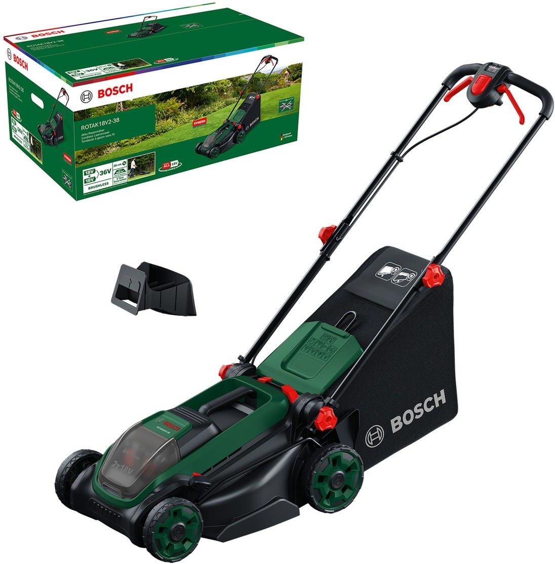 ROTAK18V2-38 Wydajna kosiarka 3 w 1 z nożem 38 cm, przeznaczona do średnich i dużych trawników 2 akumulatory 18 V zapewniają moc 36 V i dłuższy czas pracy Silnik bezszczotkowy zapewnia wysoką wydajność i dłuższą żywotność Deflektor z mocowaniem magnetycznym umożliwia opróżnianie worka na trawę …