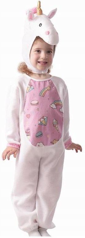 STRÓJ JEDNOROŻEC W skład stroju wchodzi: kombinezon, kaptur Rozmiar: 92/104 cm Kolor: biały Materiał: 100% poliester Producent: Godan Format: 308x264 mm