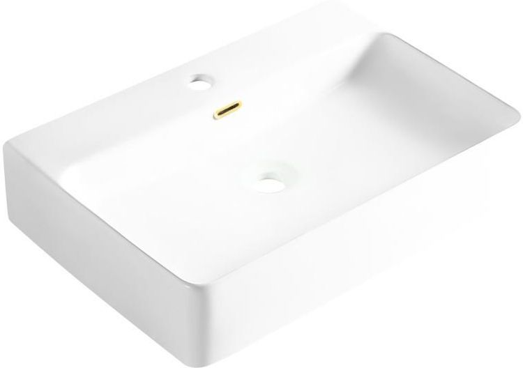 Marka: Balneo Model: NERIA Typ: Umywalka nablatowa ceramiczna Kolor przelewu: Złoty (prostokątny) Materiał: Ceramika Długość: 60 cm Szerokość: 42 cm Wysokość: 13 cm Waga: 20 kg Otwór na baterię: Tak Średnica otworu na baterię: 35 mm Średnica przelewu: 22 mm