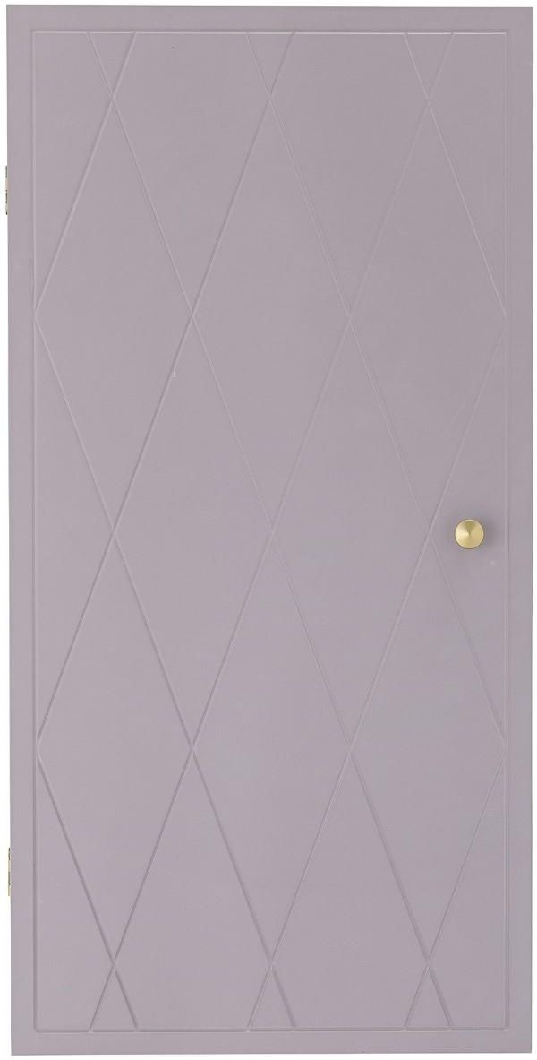 Szafka Nell to ciekawy dodatek do pokoju dziewczynki. Szafka ścienna ma na froncie wzór przypominający tapicerowane drzwi z mosiężną klamką. Szafka Nell ma uroczy jasnofioletowy kolor, który doskonale dopasuje się do pokoju dziecięcego. Szafka ma trzy półki, więc można schować w niej wiele zabawek lub ubrań.