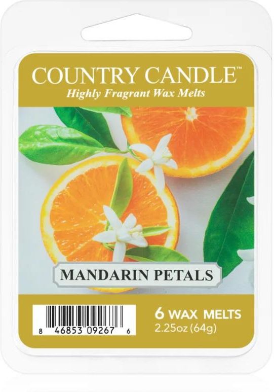 Country Candle Mandarin Petals, 64 g, Wosk do lamp aromatycznych Zapachy do domu, Właściwości: owocowy zapach Sposób użycia: Nigdy nie pozostawiaj rozpuszczającego się wosku bez nadzoru i w pobliżu łatwopalnych przedmiotów. Nie pozostawiaj produktu w zasięgu dzieci lub zwierząt domowych.