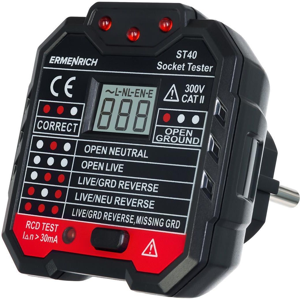 Tester gniazd sieciowych Ermenrich Zing ST40 z wtyczką europejską i specjalnym przyciskiem do testowania działania wyłącznika różnicowoprądowego (RCD). Po włożeniu testera do gniazda tester dostarcza wskazania za pomocą trzech diod LED. Kody świetlne są podawane bezpośrednio na obudowie urządzenia …