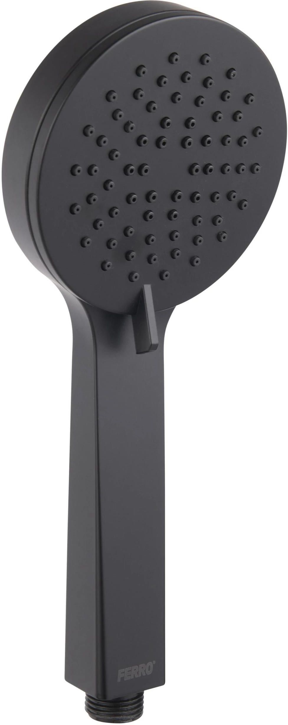 Ferro Vigo Black sluchawka prysznicowa 3-funkcyjna czarna. DANE TECHNICZNE Styl: Współczesny Klasa przepływu (natrysk): Z Długość rączki natryskowej: 250 mm Ferro Easy Clean System (rączka natrysku): Tak Ilość strumieni rączki natryskowej: 3 Kształt rączki natryskowej: Okrągła Materiał rączki natryskowej: ABS Sposób pakowania jednostkowego: Blister Temperatura wody [°C] maks.: ? 70°C Typ powłoki: Mat Typy strumienia: Deszcz, Masaż, Mieszany Wymiary tarczy rączki natryskowej: 100 mm Rodzaj przełącznika funkcji rączki natryskowej: Obrotowy Producent: FERRO S.A. Polska PRZEMYSŁOWA 7, 32-050 Skawina info@ferro.pl