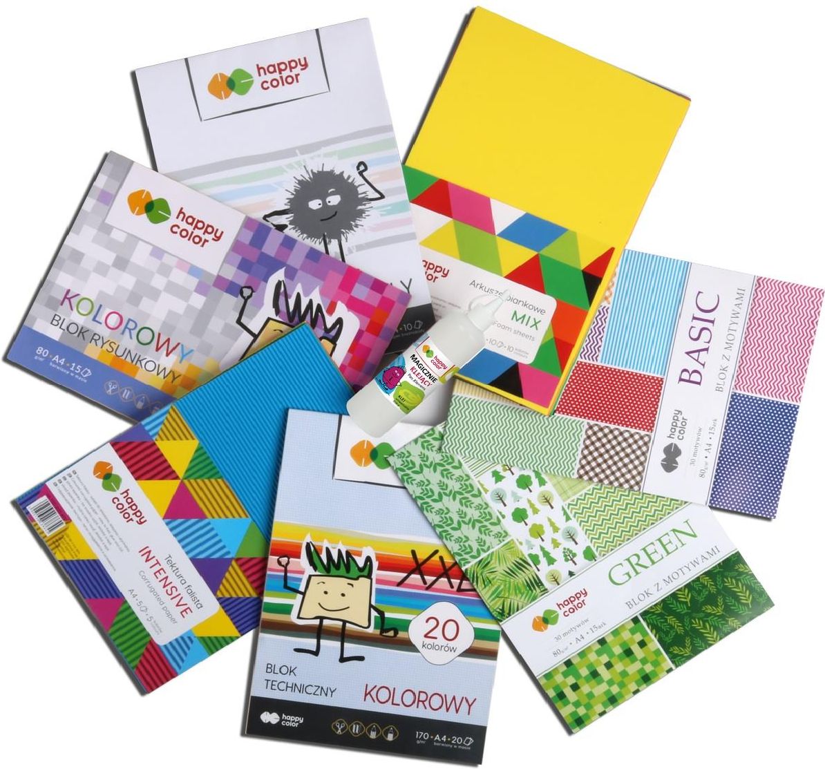 Kreatywne_Smyki_pl polecają: ZESTAW KREATYWNY „BASIC HOBBY” od Happy Color. Niezwykły komplet materiałów zachęca do zabawy z dzieckiem. Inspiruje do tworzenia oryginalnych dekoracji i prac plastycznych. W zestawie: Blok techniczny biały A4, 10 ark. Blok rysunkowy kolorowy A4, 15 ark. Blok techniczny kolorowy A4, 20 ark. Blok z motywami GREEN A4, 15 ark. Blok z motywami BASIC A4, 15 ark. Klej uniwersalny 100 g Tektura falista INTENSIVE A4, 5 kol. Arkusze piankowe MIX A4, 10 kol. Ołówek trójkątny HB GRATIS Jeśli potrzebujesz więcej takich zestawów lub innego produktu z naszych aukcji to skontaktuj się z nami, postaramy się pomóc. Cieplutko pozdrawiamy Zespół Kreatywnych Smyków :)