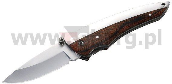 Scyzoryk firmy HERBERTZ SOLINGEN Nóż składany średniej wielkości o nowoczesnym kształcie, którego rękojeść wykonano ze stali nierdzewnej z okładzinami z drewna. Głownię o profilu Drop point – (ostrze doskonałe na nóż roboczy, niewielka krzywizna ułatwia cięcia, a w miarę ostry czubek sprzyja bardziej precyzyjnym pracom)wykonano ze stali nierdzewnej AISI420 o grubości 3 mm. Ostrze Plain o szlifie wklęsłym powoduje że ma ono bardzo dobre parametry cięcia oraz dużą płynność cięcia. Kołek na głowni umożliwia wygodne i łatwe otwarcie noża jedną ręką. Wyprofilowana rękojeść ze stali nierdzewnej zapewnia wygodny i pewny chwyt podczas pracy. Bezpieczeństwo użytkowania zwiększa zagłębienie w rękojeści które osłania palec wskazujący przy intensywnej pracy. Na końcu rękojeści znajduje się otwory umożliwiające zamontowanie linki zabezpieczającej. W pozycji otwartej głownia blokowana jest blokadą LinerLock, której wytrzymałość i niezawodność gwarantuje odpowiednia grubość i wytrzymałość sprężyny blokującej. Model ten doskonale sprawdzi jako miejski nóż składany a także - dzięki wytrzymałości i łatwości czyszczenia - podczas wszelkich terenowych wypadów. Dane techniczne: Numer produktu: 288611 Rodzaj stali: AISI 420 Długość głowni (mm / in): 70 / 2,76 Grubość głowni (mm / in): 3 / 0,12 Długość całkowita rozłożona: 180 / 2,76 Długość całkowita złożona: 110 / 4,33 Waga (g): 105 Ostrze: Plain Typ głowni: Drop Point Typ blokady: Liner-Lock Rodzaj rękojeści: Metal – Drewno Producent: C. Jul. HERBERTZ GmbH. SOLINGEN Opracowanie: firma Sharg® bezpośredni importer. xxyam