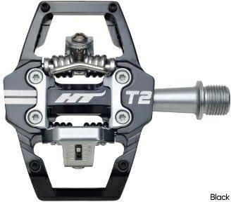 Pedały HT Model: HT-T2- Materiał: Aluminium obrabiane CNC - Anodowanie typu polishing - Oś wykonana z utwardzanej cieplnie stali Cr-Mo obrabianej CNC - Oparte na łożyskach maszynowych i ślizgu IGUS - dodatkowe 4 piny dla lepszej przyczepności - Wymiary: 68 x 84 x 17 mm - HT Pro Cleat System: X1, X1F / X1E - Piny: Wymienne stalowe SP7 - Waga: 376g