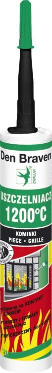 Den braven Uszczelniacz Fire Sealant 1200 C czarny 280 ml EAN 8711595061667 Opis produktu Den Braven Uszczelniacz 1200°C to jednoskładnikowy kit uszczelniający na bazie krzemianu sodu, do uszczelniania miejsc narażonych na bezpośredni kontakt z ogniem i temperaturę do + 1200°C. KORZYŚCI Utwardza się pod wpływem odparowania wody Po wyschnięciu twardy, sztywny, nieodkształcalny Odporny na temperaturę do + 1200°C (odporny na bezpośredni kontakt z ogniem) Żaroodporny Dobrze przyczepny do ognioodpornej ceramiki budowlanej, szamotu, betonu, kamienia, żeliwa i tym podobnych porowatych podłoży Do zastosowań wewnętrznych Na zewnątrz do miejsc pod zadaszeniem (bez działania wody i opadów) Nie zawiera azbestu Nie kruszy się i nie pęka w statycznych połączeniach Odporny na SO2, SO3 i NO2 (dotyczy stężeń typowych dla podgrzewaczy, kominków i pieców do użytku domowego) Łatwy w zastosowaniu bez względu na kształt powierzchni Obszar użycia Uszczelnianie miejsc narażonych na bezpośredni kontakt z ogniem, np. kominy, piece, paleniska, grille, kotły itp. Uszczelnianie połączeń elementów wykończeniowych wykonanych z kamienia, betonu i żeliwa, np. wkładów kominkowych. Uszczelnianie bloczków ognioodpornych. Uszczelnianie elementów przewodów spalinowych, ceramicznych wkładów kominowych. Okres trwałości Przechowywać w oryginalnym opakowaniu, w suchym i chłodnym miejscu w temperaturze +5°C do +25°C. Okres trwałości: 9 miesięcy od daty produkcji.