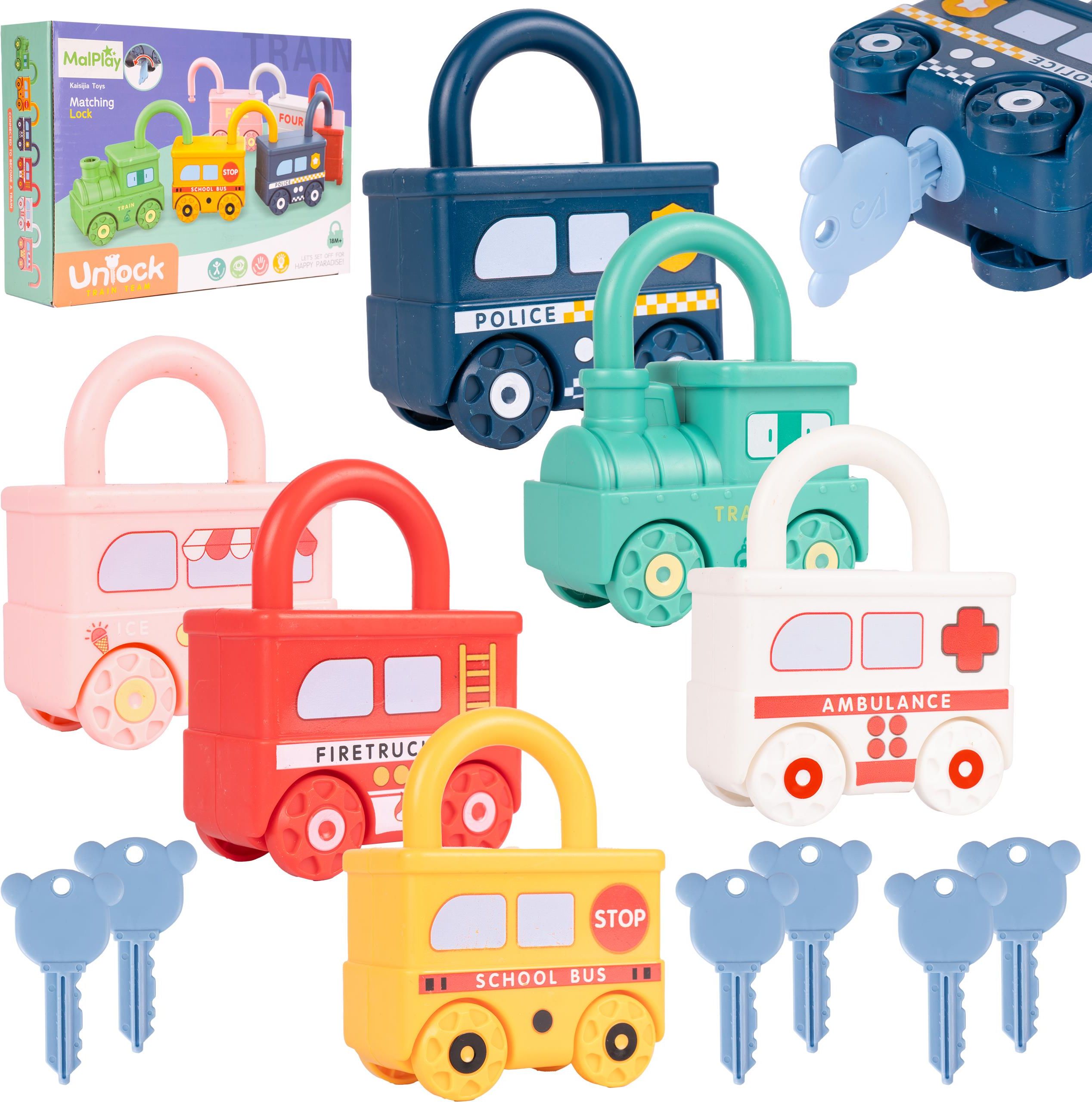 Kłódki z Kluczykami Autka 6 Szt. Zabawka Logiczna Montessori Gra Edukacyjna Kościan