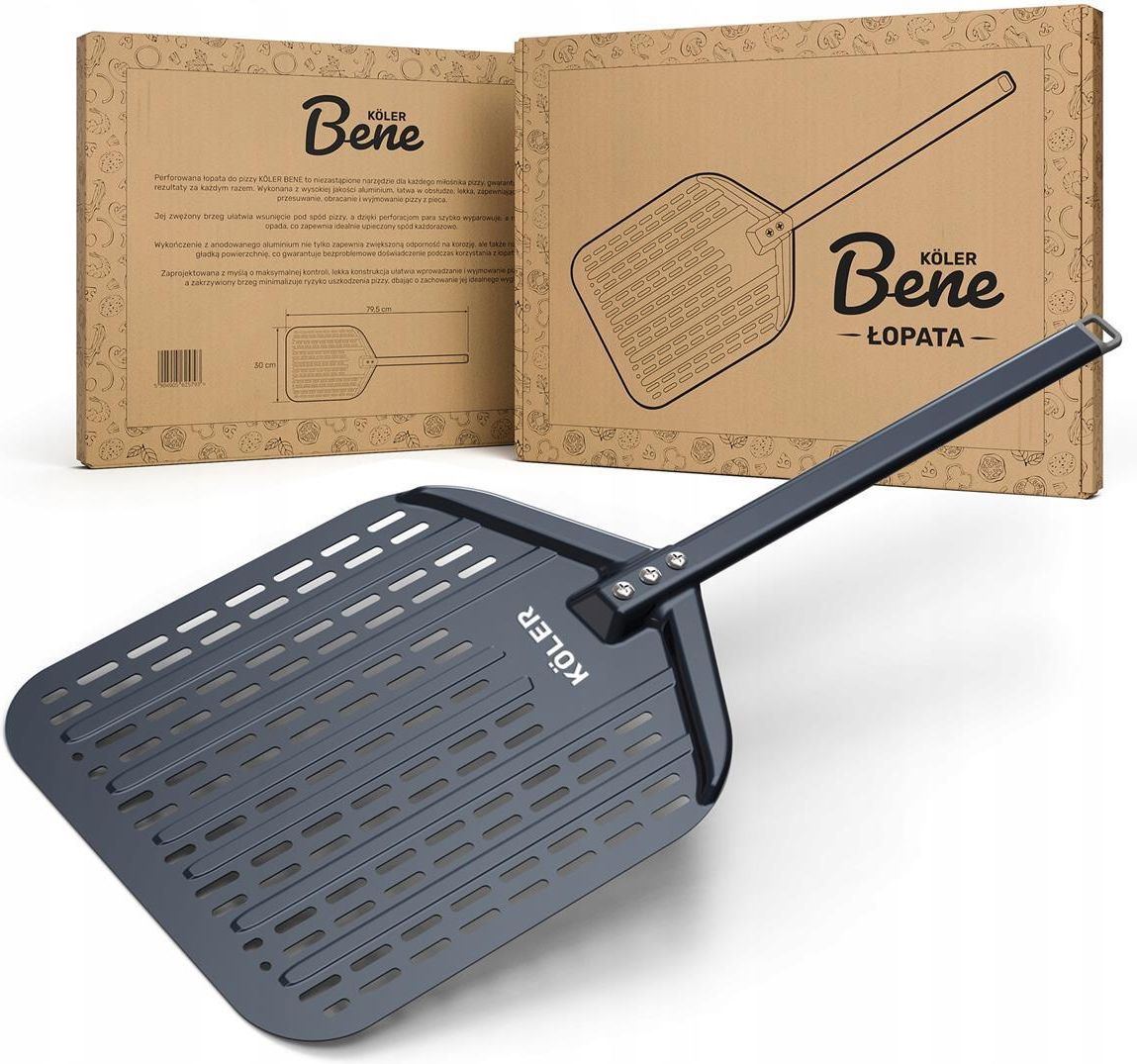 Łopata do Pizzy KOLER BENE, 30 cm Łopata do pizzy KOLER BENE o średnicy 30 cm to idealne narzędzie dla każdego miłośnika pizzy. Wykonana z wysokiej jakości anodowanego aluminium, jest lekka, co ułatwia jej manewrowanie i przenoszenie pizzy z blatu do pieca oraz z pieca na talerz. Jej perforowana powierzchnia pozwala na skuteczne usuwanie nadmiaru mąki i szybkiemu odparowywaniu ciasta, co gwarantuje bezproblemowe doświadczenie podczas korzystania z łopaty. Zalety produktu Wykonanie z anodowanego aluminium: Gwarantuje gładką powierzchnię, trwałość i odporność na wysokie temperatury. Lekka konstrukcja: Ułatwia precyzyjne operowanie, bez zbędnego wysiłku. Perforowana powierzchnia: Usuwa nadmiar mąki poprawiając tym jakość wypieku. Wyprofilowany brzeg: ułatwia nakładanie oraz zsuwanie ciasta z łopaty bez uszkadzania. Średnica 30 cm: Odpowiednia do standardowych rozmiarów pizzy. Łopata KOLER BENE to niezastąpione akcesorium w każdej kuchni, która serwuje domowe pizze, idealna zarówno dla amatorów, jak i profesjonalistów. Pewność i bezpieczeństwo na lata dzięki Köler Prime Support Kupując produkty w oficjalnym sklepie Köler, otrzymujesz rozszerzoną ochronę Köler Prime Support™ – to program, który nie tylko zapewnia bezpieczeństwo Twojego urządzenia na długie lata, ale także całodobowe wsparcie techniczne i wygodną obsługę zgłoszeń w systemie door-to-door. Kupując produkt objęty programem Köler Prime Support™, zyskujesz pewność, że Twój grill posłuży Ci przez długie lata. Każda, nawet najmniejsza część zamienna jest u nas zawsze dostępna – wystarczy jeden kontakt z naszym biurem obsługi, a my błyskawicznie pomożemy, abyś mógł jak najszybciej wrócić do grillowania. Na każde zgłoszenie odpowiadamy maksymalnie w 24 godziny! Köler to synonim niezawodności. Oferujemy wieloletnie wsparcie i profesjonalne doradztwo techniczne, a wszystkie zgłoszenia realizujemy w Polsce z najwyższym priorytetem, by Twój sprzęt działał bez zarzutu i bez zbędnych przestojów. Postaw na Köler – solidność, bezpieczeństwo i wsparcie, na którym możesz polegać!