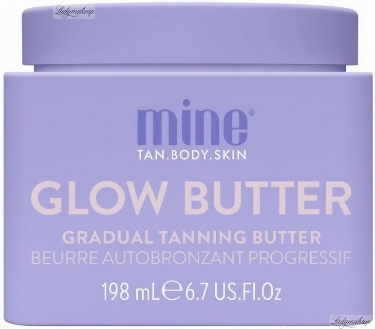 GLOW BUTTER - Gradual Tanning Butter marki Mine Tan. Masło do ciała. Przeznaczone jest do pielęgnacji skóry każdego rodzaju (w szczególności suchej i wrażliwej) i o każdej karnacji. Masło Mine Tan posiada lekką oraz szybko wchłaniającą się formułę. Wzbogacone zostało o specjalne substancje samoopalające, które subtelnie budują naturalną, złotą opaleniznę, a także pomaga wzmocnić i przedłużyć już istniejącą opaleniznę. W swoim składzie zawiera potrójną mieszankę maseł (kakaowego, murumuru i shea), które dogłębnie nawilżają oraz odżywiają naskórek. Mine Tan masło sprawia, że skóra staje się przyjemnie miękka, gładka i jedwabista. Kosmetyk nie zawiera w sobie pomarańczowych tonów. Kosmetyk dostępny jest w słoiczku o pojemności 198 ml. Masło do ciała. Zawiera samoopalacz. Dobrze nawilża i odżywia. Zmiękcza oraz wygładza naskórek.