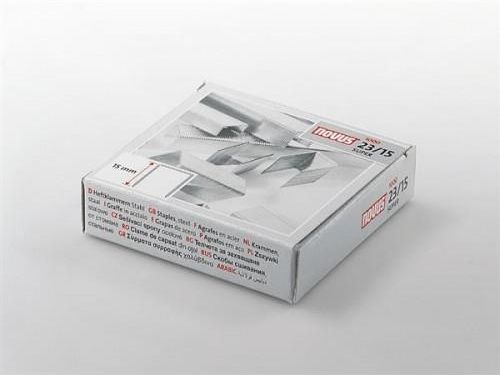 ZSZYWKI NOVUS 23/15 SUPER x 1000 Zszywki Novus, ocynkowane w sposób przyjazny dla środowiska oraz precyzyjnie wykonane, spełniają wymogi DIN 7405. Zszywki stalowe do zszywaczy heavy-duty. Zszywki 23/15 SUPER są wykonane z nieco grubszego drutu, niż standardowe 23/15. Wysokość nóżki: 15 mm. Umożliwiają zszycie do 120 arkuszy standardowego papieru (80g/m2). Opakowanie zawiera 1000 szt.