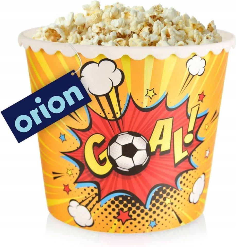 PRZYDATNY- Pojemnik na popcorn i chipsy, idealnie sprawdzi się podczas filmowego seansu. Pojemnik ma wysokość 14 cm i średnicę 17 cm. Pojemność pojemnika wynosi 2,3 litra. SOLIDNY- Wykonany z najwyższej jakości tworzywa z efektownym motywem przedstawiającym piłkę do piłki nożnej i napis Goal. WIELOKROTNEGO UŻYTKU- Pojemnik jest wielokrotnego użytku, po użyciu wystarczy go umyć i ponownie użytkować. WYGODNY- Ułatwia podawanie i przenoszenie przekąsek takich jak popcorn czy chipsy.Pojemnik posiada duży otwór, dzięki czemu jedzenie popcornu z niego jest wygodne. WSZECHSTRONNY- Kubek wykorzystamy podczas oglądania sensów filmowych w domowym zaciszu, ale również świetnie sprawdzi się podczas organizacji przyjęć zarówno dla dzieci, jak i dla dorosłych. Pojemnik na popcorn i chipsy o pojemności 2,3 litra. Wygodny w użytkowaniu pomieści dużą ilość popcornu. Pojemnik posiada ciekawy dekor w postaci motywu piłkarskiego gola, dlatego prezentuje się niezwykle efektownie. Świetnie sprawdzi się podczas domowych seansów oraz podczas imprez zarówno dla dzieci jak i dorosłych. Wykorzystamy go również na słodkich stołach, wówczas umieszczony w nich popcorn prezentuje się niezwykle efektownie. Kubek jest świetnym pomysłem na prezent dla wszystkich miłośników filmów w domowym zaciszu oraz popcornu. Pojemnika nie należy myć w zmywarce do naczyń ani użytkować w mikrofalówce.Oryginalny produkt czeskiej marki Orion.Wyprodukowano zgodnie z europejskimi standardami.