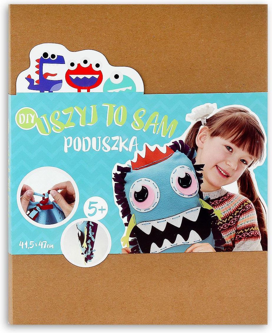 USZYJ TO SAM – PODUSZKA POTWÓR ZESTAW KREATYWNY DLA DZIECI 5+ Uszyj to sam: Poduszka Potwór to wyjątkowy zestaw kreatywny, który pozwala dzieciom samodzielnie stworzyć własną, miękką i kolorową poduszkę w kształcie potwora. To nie tylko świetna zabawa, ale także rozwijanie zdolności manualnych, cierpliwości i kreatywności. Najważniejsze cechy - Kompletny zestaw do szycia – zawiera wszystkie potrzebne elementy - Poduszka w kształcie zabawnego potwora – atrakcyjny motyw dla dzieci - Bezpieczne materiały – filc, miękkie wypełnienie, plastikowa igła - Rozwija zdolności manualne i kreatywność - Idealny pomysł na prezent lub kreatywną aktywność Zastosowanie Zestaw „Uszyj to sam” to idealna propozycja na twórczą zabawę w domu, warsztaty plastyczne czy zajęcia w przedszkolu. Dziecko zyskuje nie tylko satysfakcję z własnoręcznie wykonanej zabawki, ale także uczy się podstaw szycia w przyjazny i bezpieczny sposób. Informacje techniczne - Wzór: poduszka – potwór - Wiek dziecka: 5+ - Zawartość zestawu: filcowe elementy, nitka, plastikowa igła, wykrój, wypełnienie - Wymiary gotowej poduszki: 25,5 x 25,5 cm