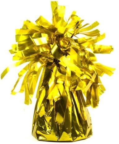 Ciężarek do balonów owinięty folią w kolorze złota, wysokość ok. 7 cm, waga ok. 130 g. Obciążnik do balonów to niezbędny gadżet przy urządzaniu imprezy.Jest niezbędnym dodatkiem dla każdego dekoratora i powinien się znaleźć w ofercie każdego sklepu z balonami foliowymi i lateksowymi.Dzięki imprezowym ciężarkom owiniętymi w błyszczącą folię bez problemu ozdobimy przyjęcie balonami z helem tworząc niesamowite imprezowe aranżacje.Dobrane kolorystycznie obciążniki do balonów są nie tylko bardzo funkcjonalne, ale również wyglądają szałowo, pełniąc rolę dodatkowej dekoracji podczas przyjęcia z okazji urodzin, Sylwestra, wesela, czy wieczoru panieńskiego.