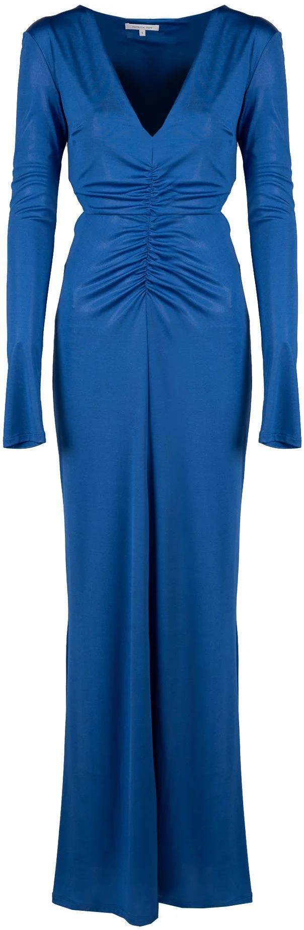 Długa sukienka o dopasowanym kroju to idealny wybór na wyjątkowe okazje, podkreślający sylwetkę i dodający elegancji każdej stylizacji, a jej klasyczny fason sprawia, że jest niezwykle uniwersalna. Z dekoltem w serek, który subtelnie eksponuje szyję i obojczyki, dodając lekkości i kobiecości całej kreacji, jednocześnie pozwalając na swobodę doboru biżuterii, która dodatkowo podkreśli Twój styl. Z marszczeniem, które dodaje sukience niepowtarzalnego charakteru, tworząc efektowne fale i optycznie modelując sylwetkę, co sprawia, że każda kobieta poczuje się w niej wyjątkowo. Z wycięciem z tyłu i po bokach, które dodają sukience nieco drapieżności i nowoczesnego wyglądu, przyciągając wzrok i dodając jej niepowtarzalnego uroku. Z rozcięciem z przodu, które nie tylko ułatwia poruszanie się, ale także dodaje sukience zmysłowego charakteru, subtelnie odsłaniając nogi i dodając całości dynamicznego wyglądu. Wykonana z wysokiej jakości tkaniny, która zapewnia komfort noszenia i trwałość, a jej delikatna struktura i przyjemna w dotyku faktura sprawiają, że sukienka prezentuje się niezwykle luksusowo i elegancko.