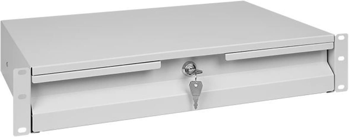 Szuflada do szaf Rack 19" Spacetronik 2U Szara SPACETRONIK Szuflada RACK 19" 2U szaraSzuflada polecana do Szafy Rackowej 19” o głębokości minimum 350mm. Idealna do przechowywania ważnych dokumentów lub sprzętów – zabezpieczona zamkiem (w komplecie 2 klucze). Wysokiej jakości stal proszkowo malowana z jakiej wykonano szufladę zapewnia jej wytrzymałość i stabilność konstrukcji. Metalowe prowadnice.Wygodę i lekkość użytkowania zapewniają metalowe prowadnice umożliwiające wypinanie szuflady. Wyłamywany przepust kablowy!Szuflada posiada wyłamywany przepust kablowy umieszczony z tyłu, bardzo praktyczne rozwiązanie do wyprowadzenia kabli z urządzeń znajdujących się wewnątrz. Łatwy montaż.Szuflada mocowana 6-punktowo do pionowych szyn rackowych. Zestaw montażowy GRATIS!Do zestawu dołączamy zestaw czterech śrub M6 wraz z koszyczkami i podkładkami. Specyfikacja produktu- Szerokość 19"- Wysokość 2U- Głębokość 330mm.- Kolor jasnoszary- Materiał - stal proszkowo malowana Masa: 1,00 Szuflada do szaf Rack o szerokości 19". Wysokość 2U, głębokość 330mm, kolor jasnoszary, Stal malowana proszkowo