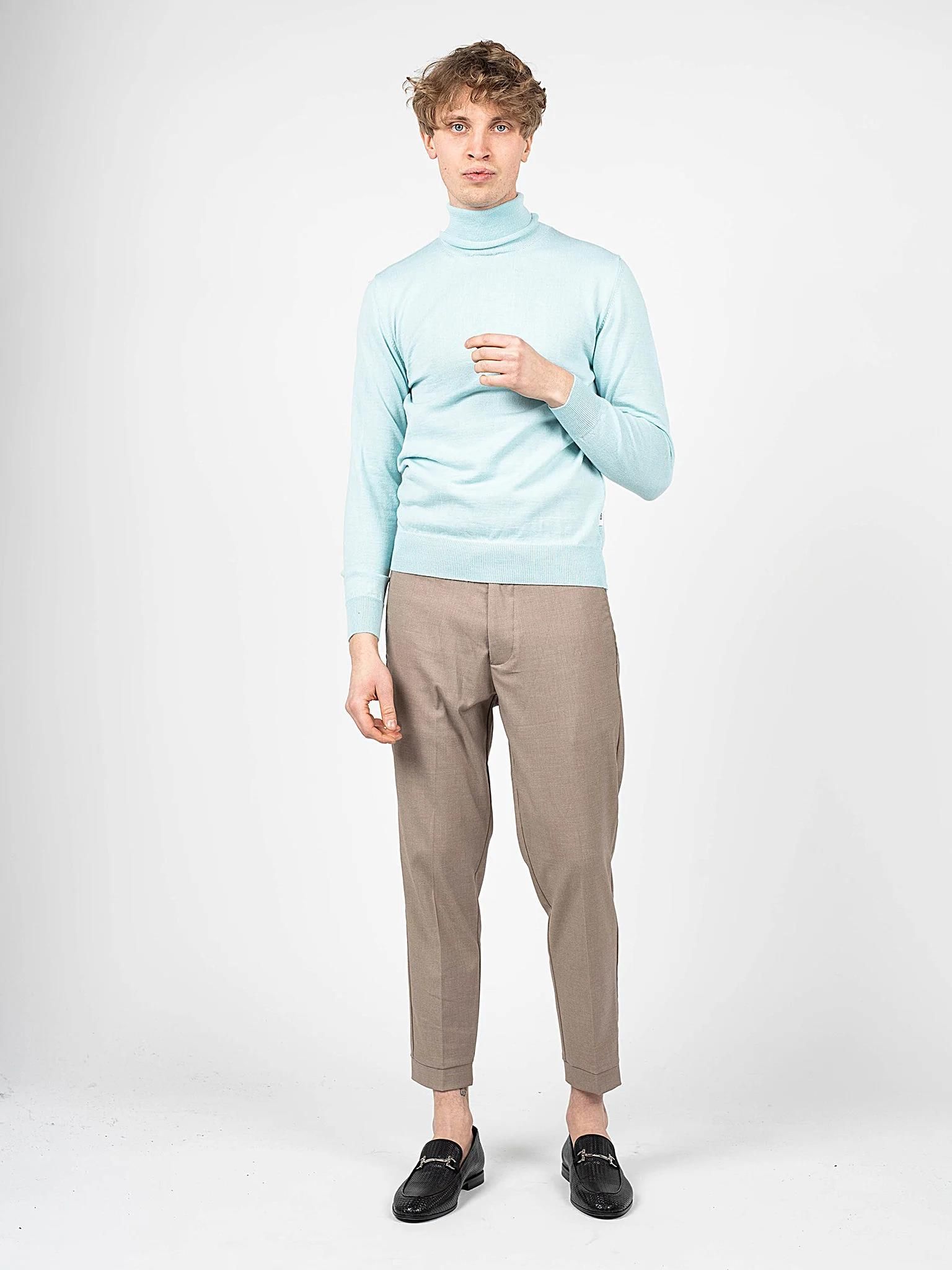 Prosty fason Z golfem Golf, rękawy oraz dół zakończone ściągaczem Z lewej strony firmowa wszywka Wykonany z wysokiej jakości dzianiny z dodatkiem wełny Wyprodukowano we Włoszech