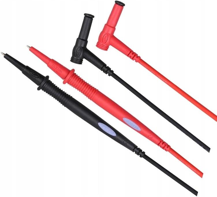 UT-L26 komplet dwóch przewodów pomiarowych. Oryginalne przewody pomiarowe marki UNI-T do multimetrów. Podwójnie izolowane przewody z certyfikatem UL, trwałe, odporne na zużycie, odporne na starzenie, długotrwałe użytkowanie. Poziom bezpieczeństwa jest CAT III 1000V LUB CAT IV 600V z obciążeniem 20A. Ergonomiczna konstrukcja uchwytu, wygodny i łatwy w obsłudze, efektywny w pracy. Zastosowanie Uniwersalne kable pomiarowe pasują do każdego miernika z gniazdami bananowymi, kompatybilne z dowolnym multimetrem, miernikiem cęgowym, przyrządem pomiarowym itd. Dane techniczne Maksymalne napięcie pracy: 1000 V kat. III / 600 V kat. IV Obciążenie: 20 A Długość: 900 mm Długość igieł pomiarowych: 15,7 mm Długość sond pomiarowych: 136 mm Spełniane normy: EN 61010-031 A1:200