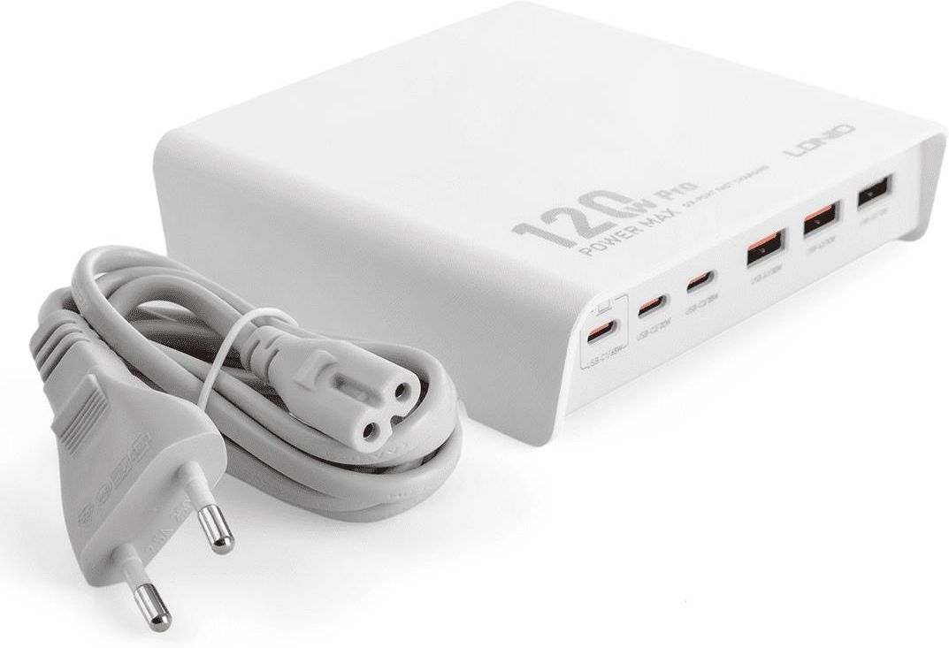 Wielofunkcyjna biała stacja ładująca 120W LDNIO Q605 6 portów USB (3 USB-C, 3 USB-A) Kościan