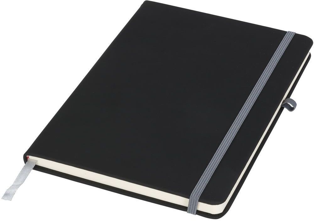 Notes Noir ma miękką, gładką i miękką okładkę z poliuretanu, dzięki czemu jest niezwykle przyjemna w dotyku. Każdy notes ma kolorowy pasek do zamykania, pętelkę na długopis i zakładkę ze wstążki. 96 kremowych kartek w linie (gramatura 70 g/m²).